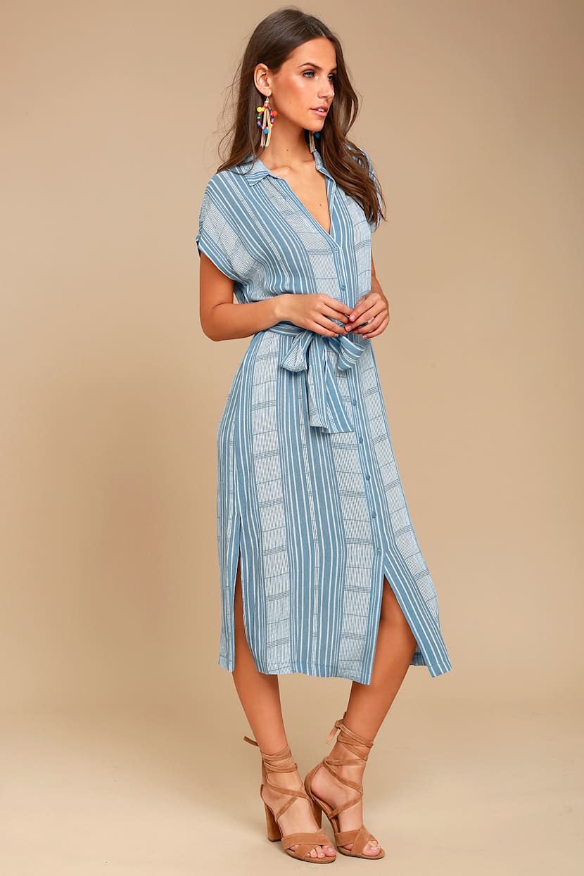 Cool Blue And White Dress Striped Dress Shirt Dress Midi Dress 52 00 Lulus
